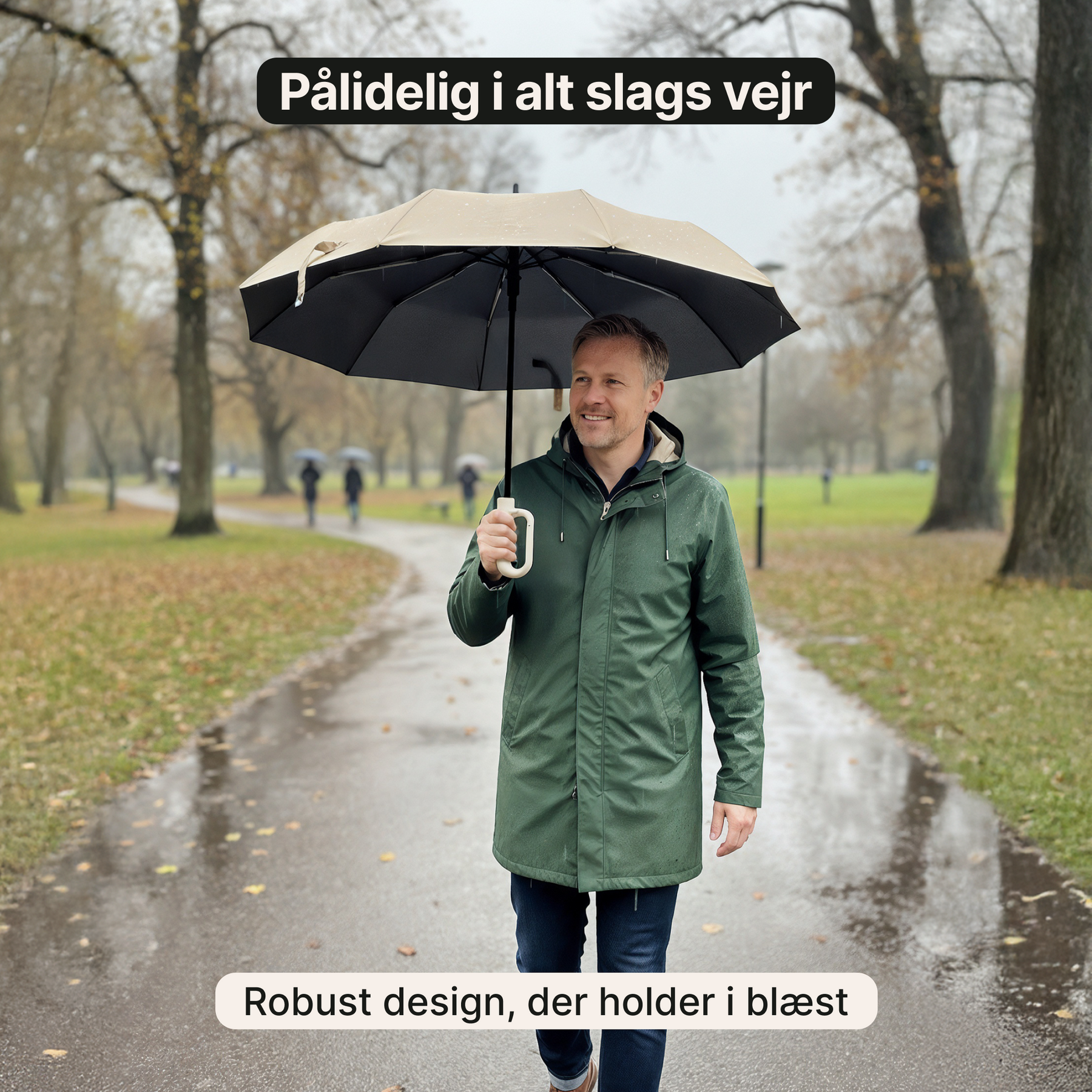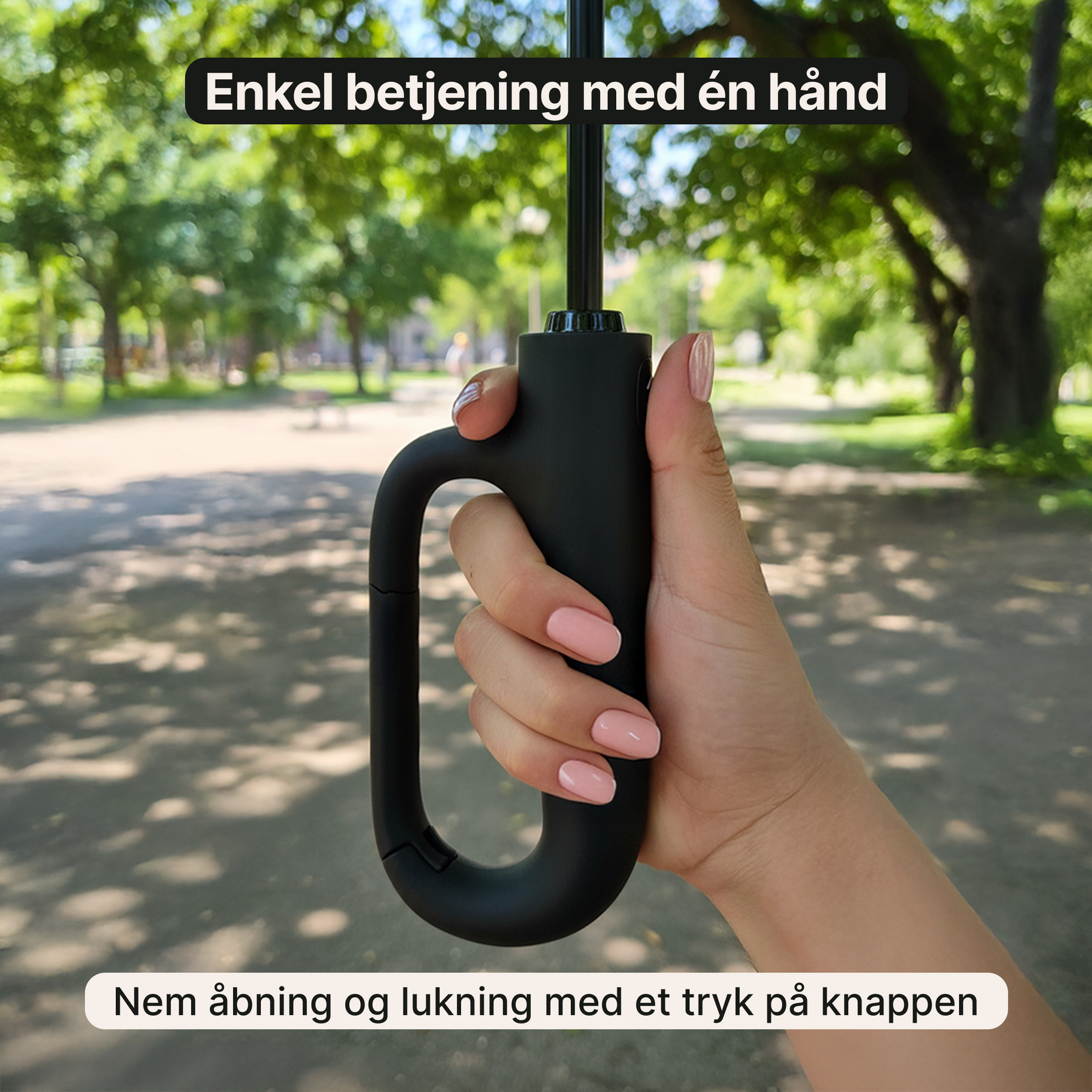 Automatisk åbne- og lukkefunktion gør paraplyen hurtig og praktisk at betjene med én hånd.