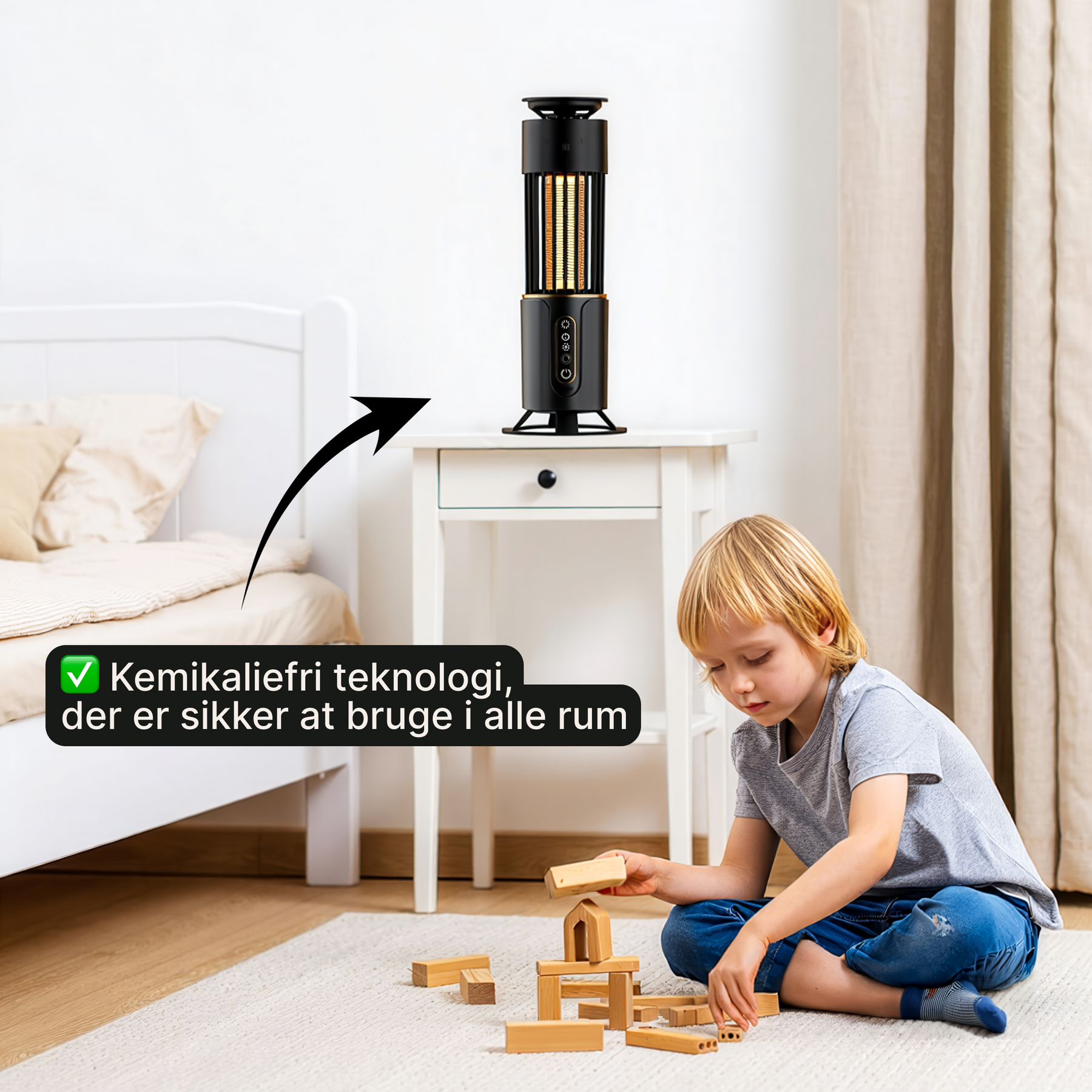 Lampen fjerner insekter uden giftstoffer og kan bruges trygt i hjemmet omkring børn og kæledyr.
