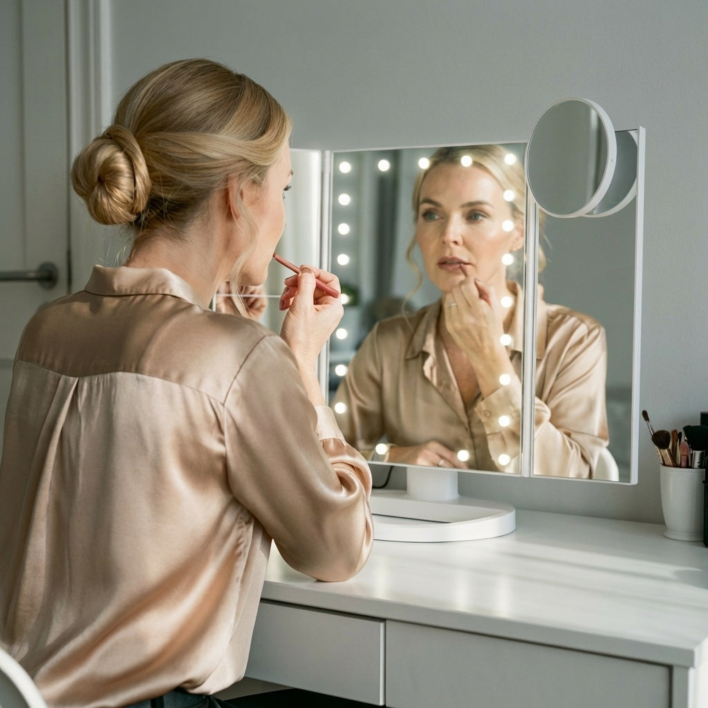 Med 2X, 3X og 10X forstørrelse har du det rette niveau til enhver opgave — fra foundation til de mindste detaljer ved øjenbryn og vipper. Alt samlet i ét spejl.