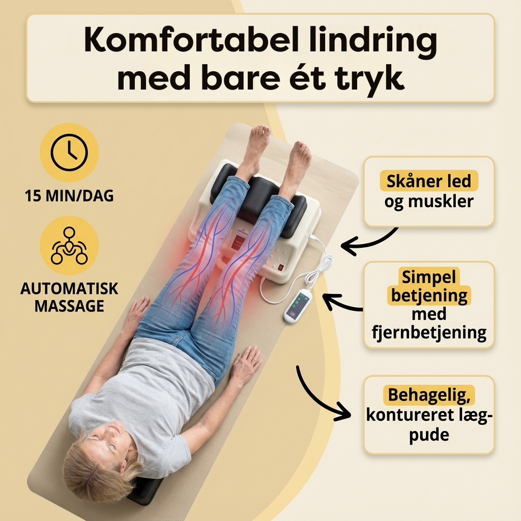 Du tænder bare, indstiller tiden (typisk 10-15 min), og slapper af. Ingen komplicerede indstillinger - bare læg dig ned, placer anklerne i holderen, og lad maskinen arbejde.