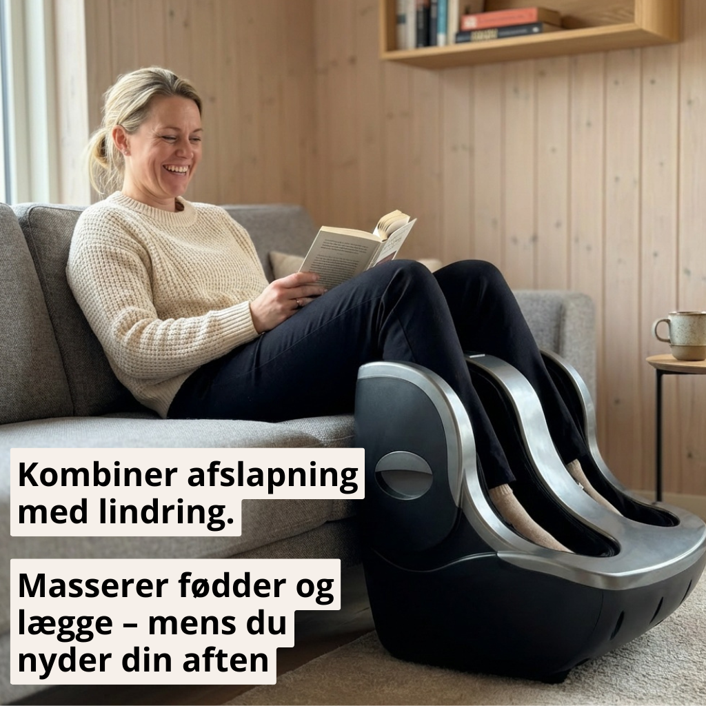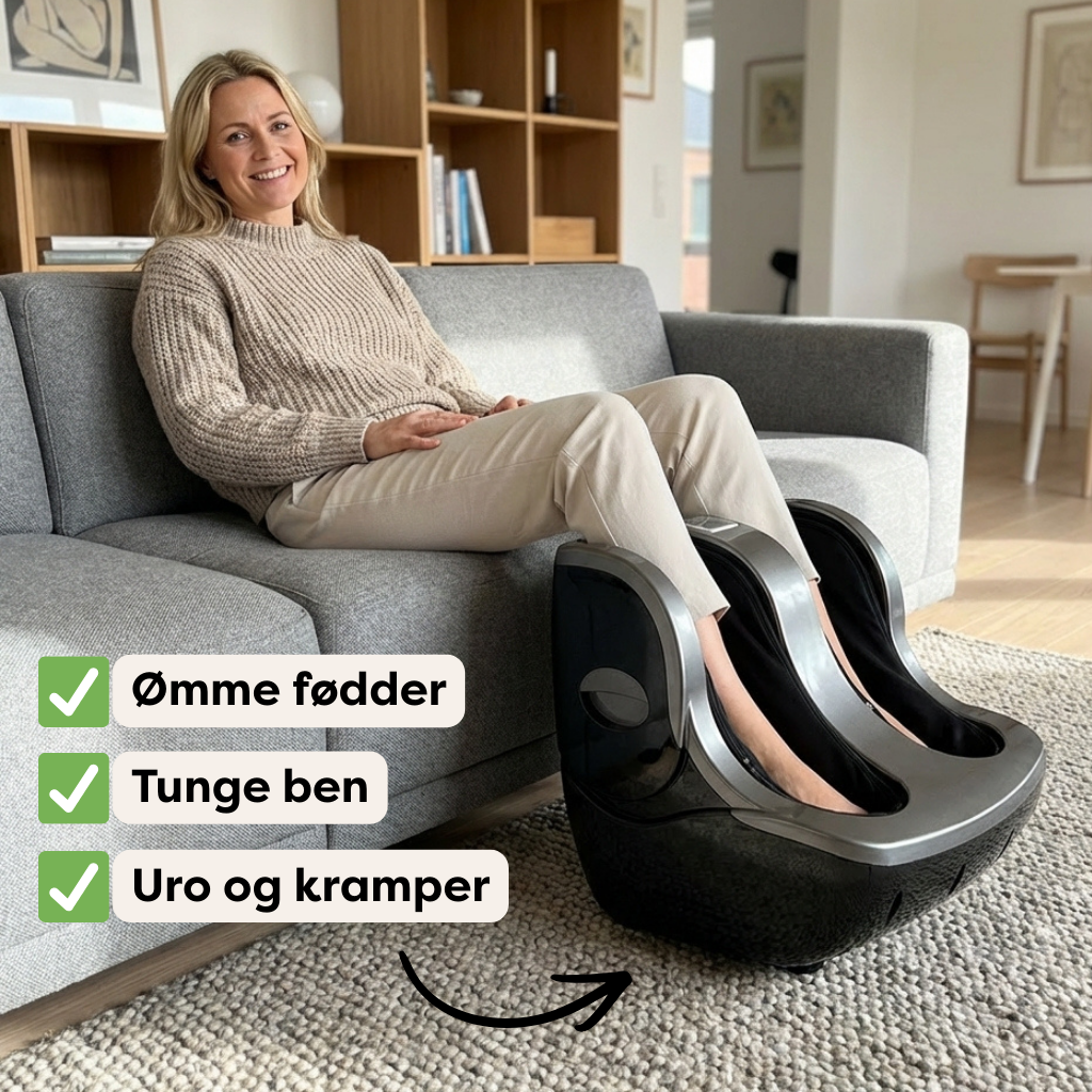 Det mærkes som hævelse, tyngde og uro i benene. Massørens vekslende tryk stimulerer blodcirkulationen i fødder og underben, så hævelsen går ned og fornemmelsen af tunge ben forsvinder.