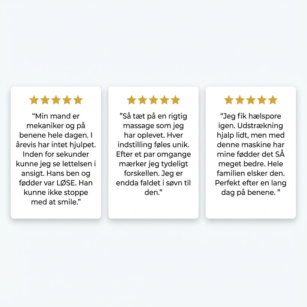 Hvis du står eller går meget i løbet af dagen, vil du mærke en tydelig forskel allerede efter første brug. Mange oplever at smerte og ømhed forsvinder markant på bare 15 minutters brug.