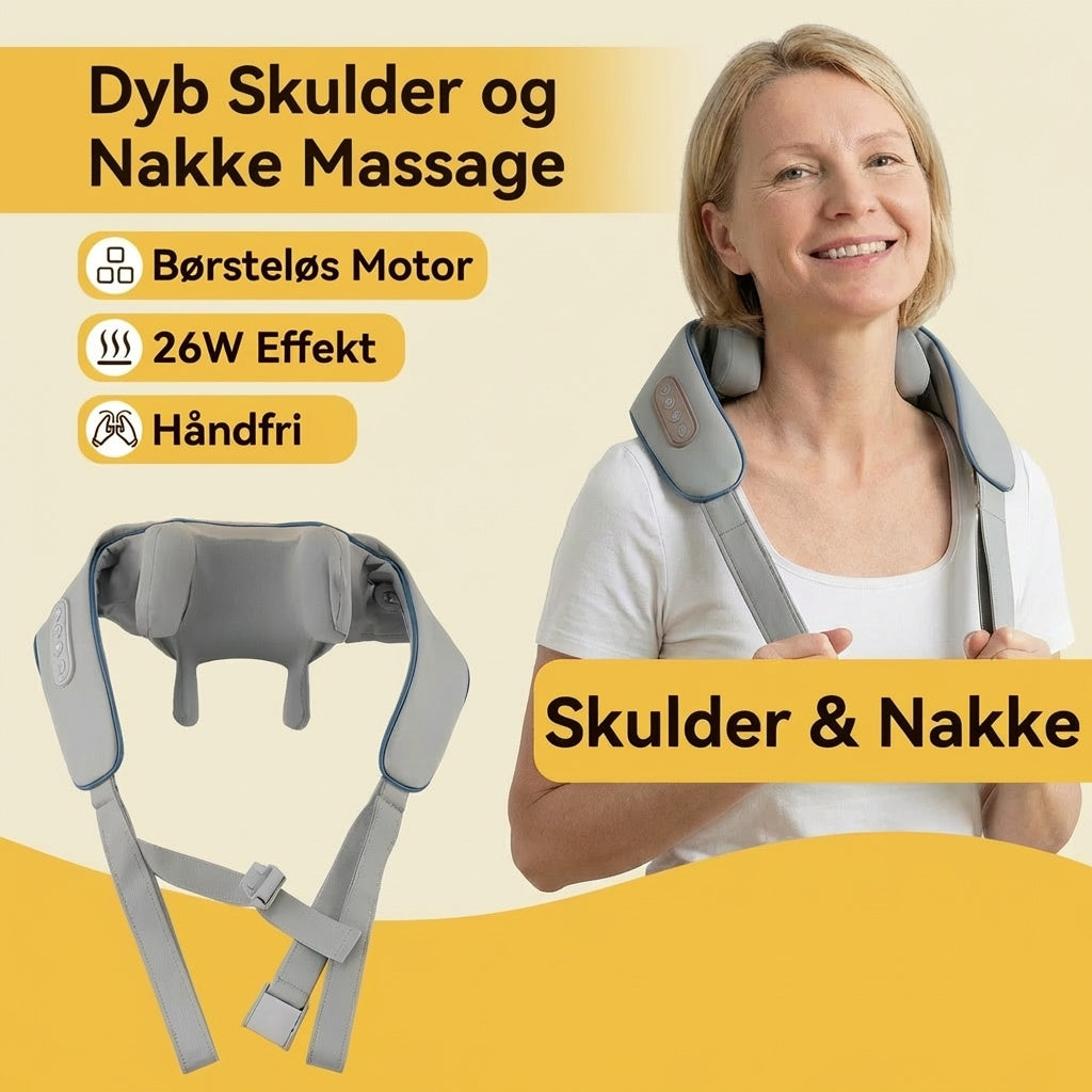 TrapeziusRelief har 6 massagehoveder der arbejder sammen - præcis som en massørs hænder. De 4 øverste masserer nakke og skuldre, mens de 2 nederste presser ned på trapeziusmusklen. Det er den muskel der strammer til når du sidder ved skærmen, kører bil eller bare har en stressende dag - og ofte synderen bag spændingshovedpine. Ved at løsne op her, oplever mange at hovedpinen letter. Brug den forebyggende og mærk forskellen.