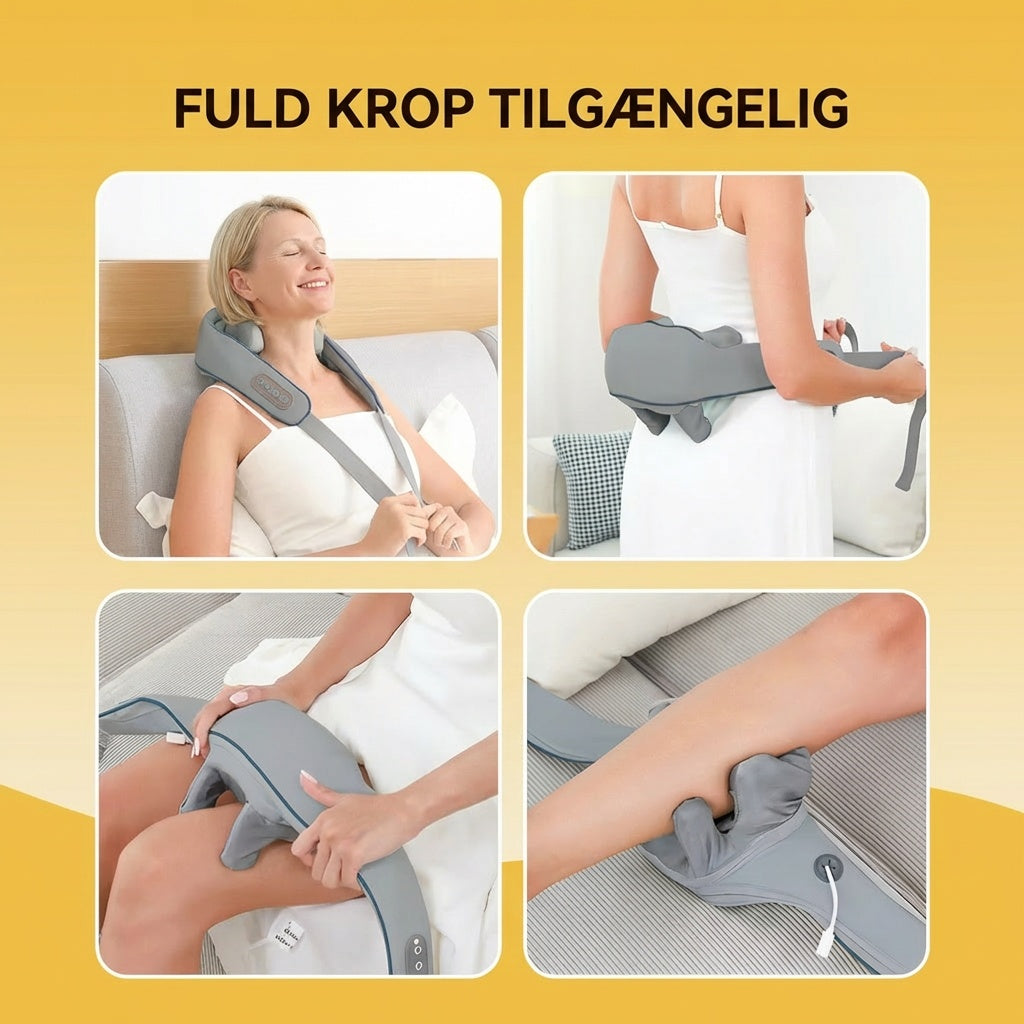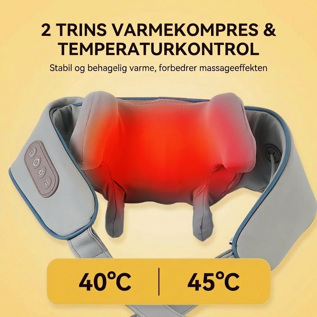 6 massagehoveder og varmeteknologi der efterligner en professionel massørs greb og teknik.