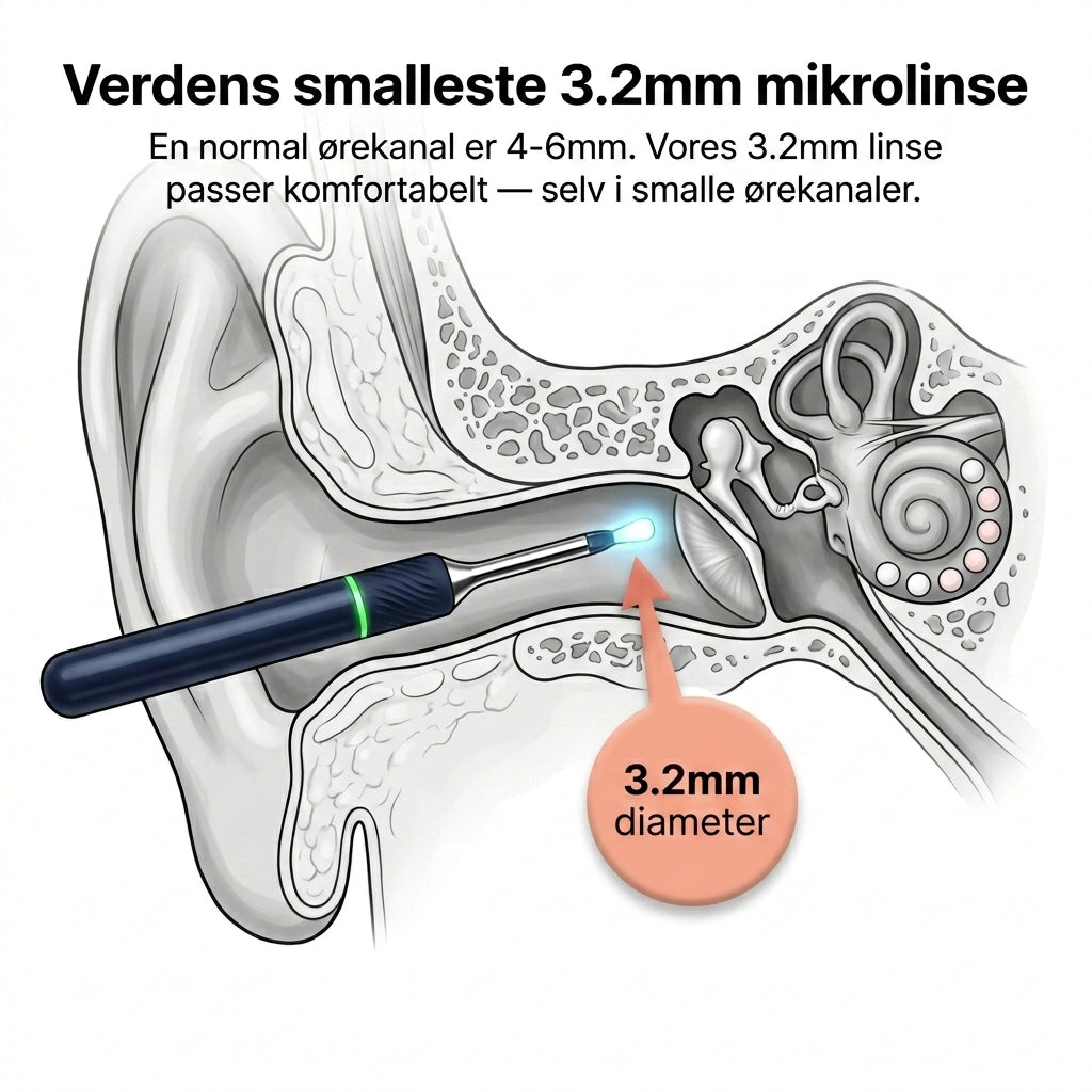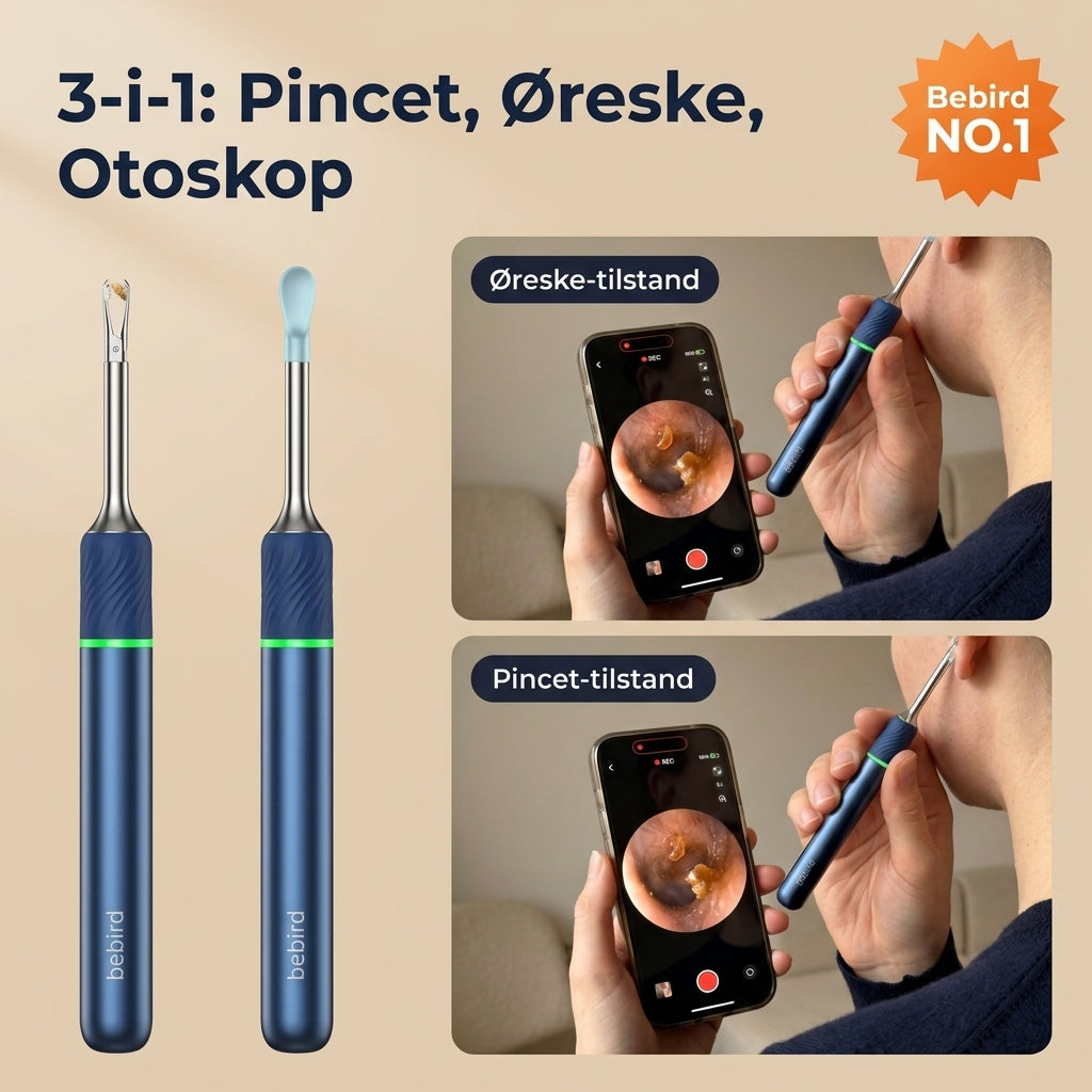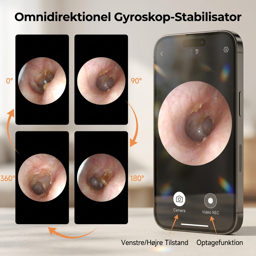Otoskopet Bebird Note 5 Pro er udstyret med et 10 MP højopløseligt kamera og et 3,2 mm slankt endoskopisk hoved, som giver et skarpt og detaljeret billede inde i øret. Det indbyggede gyroskop med justerbar stabilisering sikrer rolige og præcise bevægelser uden rystelser.