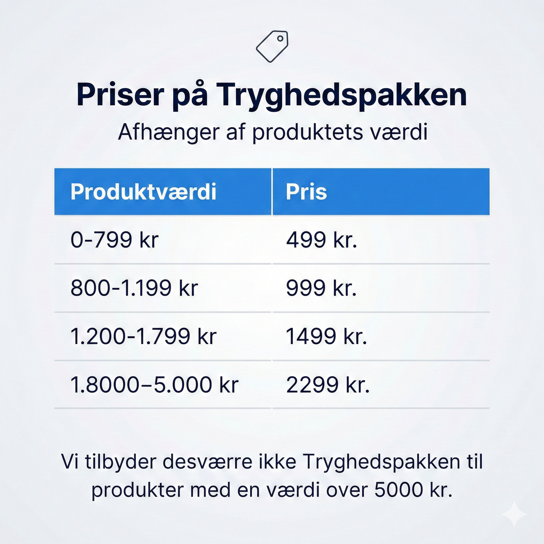Prisen på tryghedspakken afhænger af produktets værdi.
