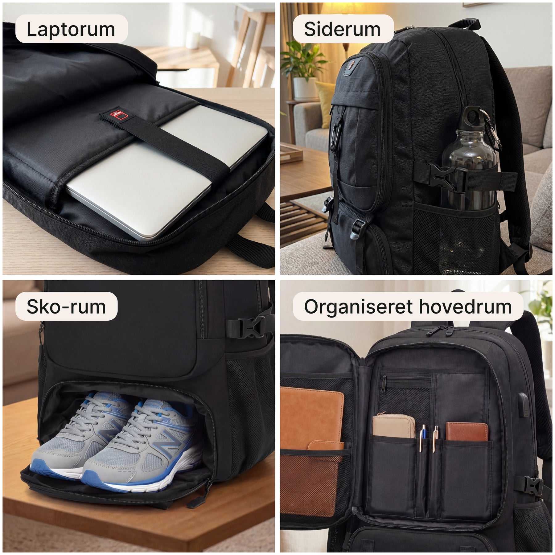 Flere rum og lynlåse gør det let at holde styr på dine ting under rejser og hverdagsbrug.