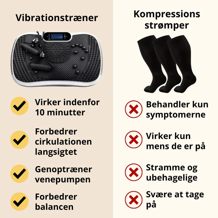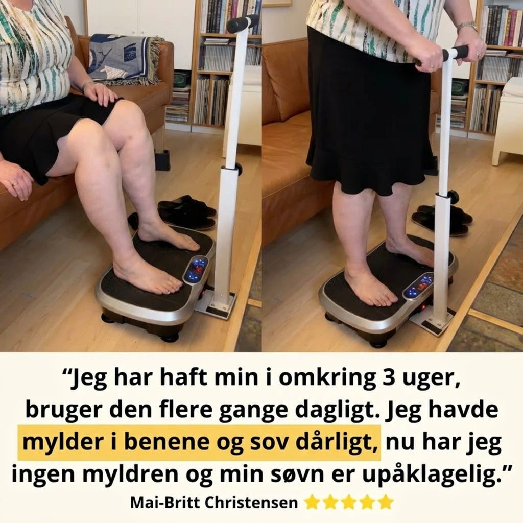 Har du også svært ved at falde til ro om aftenen på grund af uro i benene? Vibrationstræneren giver hurtig lindring ved at stimulere musklerne og nerverne i benene. Mange oplever markant mindre uro og bedre nattesøvn efter 15 minutters vibrationstræning før sengetid.